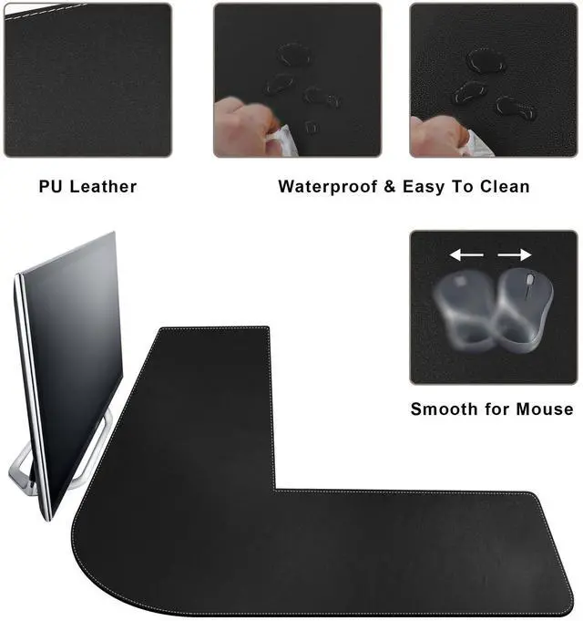 Mydours L-shaped desk pad is made of PU leather. Its smooth, water-resistant and easy-to-clean features allow you to write, work and play on it!