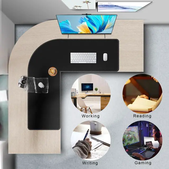 Mydours L-shaped mouse pad covers the desktop of your L-shaped desk, and the PU leather material protects your desk from desktop scratches caused by keyboards, monitors, pens, and other foreign objects.