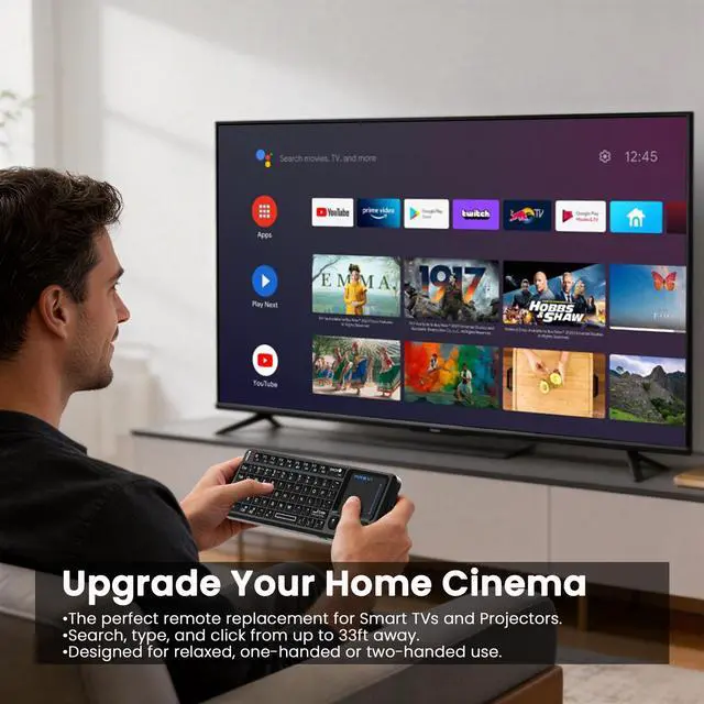 Upgrade your home entertainment and workspace with this all-in-one solution. This mini keyboard with touchpad combines a full QWERTY layout with a highly responsive touch area, allowing you to navigate smart TVs, PCs, and gaming consoles with effortless precision from the palm of your hand.