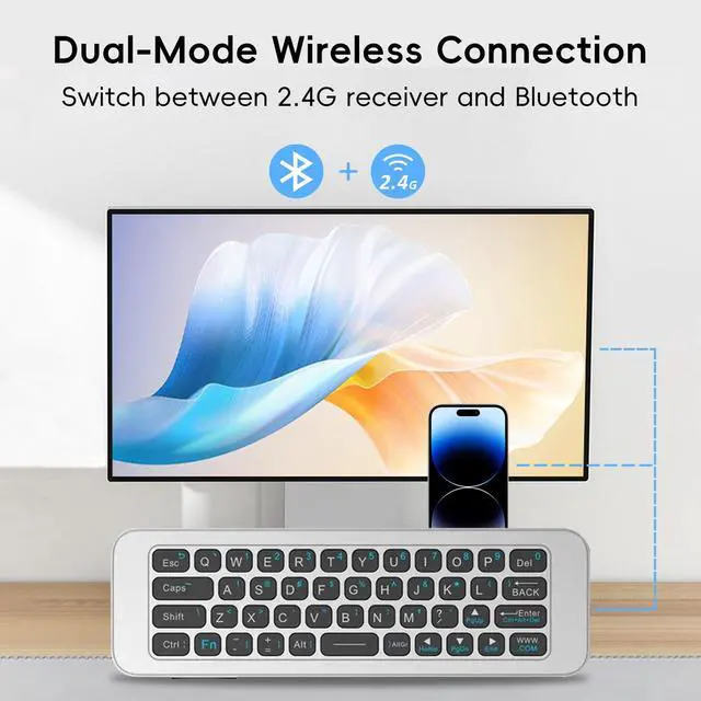 [Dual-Mode Wireless Freedom] Switch seamlessly between Bluetooth and 2.4GHz wireless modes for stable, lag-free control. Compatible with Android TV Boxes, HTPCs, Windows/Mac systems, projectors, and more. One compact controller replaces bulky keyboards and separate remotes.
