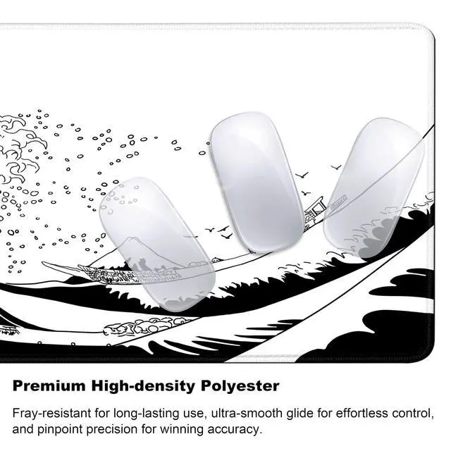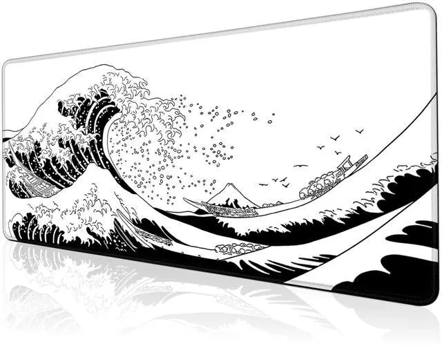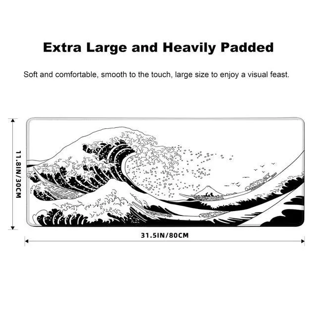 Gaming Mouse Pad for Desk,Large Mousepad Laptop,Black White Japanese Wave Anime Mouse Mat,Long XXL Waterproof Keyboard Pads,Big Non-Slip Computer Mousepads for Game Office Home31.5 x 11.9 in