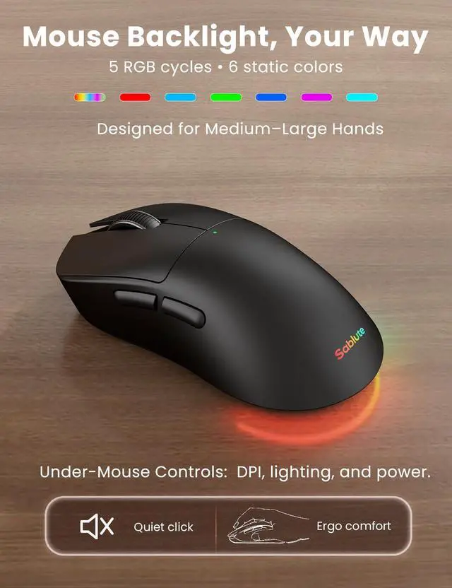 RGB Mouse 700mAh battery, auto sleep mode, 6 buttons, and 3 DPI levels (800/1200/1600). Tired of mice with only cycling lights? This one lets you choose 6 fixed colors or 5 cycle modes. Plus, the keyboard has 9 shortcut keys to boost productivity.