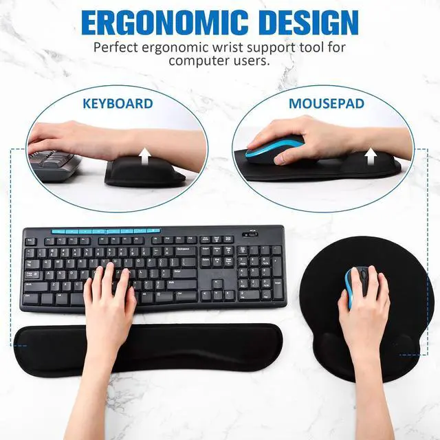 Fatigue Relief: the memory foam mouse wrist pads set is designed to support your hands and wrists in a comfortable position improve hand and wrist posture for long hours of typing and mouse use as well as reduce the pressure on your elbows and shouldersNon