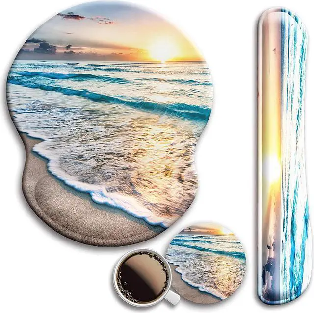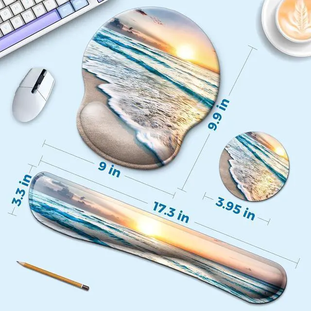 Larger: Wrist mouse pad (9 x 9.9 inch) 20% larger than usual to ensure slide more conveniently keyboard wrist rest ( 17.7 x 3.5 inch) coaster ( 3.95 x 3.95 inch).