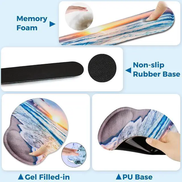 Superb Quaility: Smooth breathable lycra fabric + Gel-filled mouse pad wrist rest + Memory foam filled keyboard wrist rest supply comfortable and durable use without unpleasant smell.