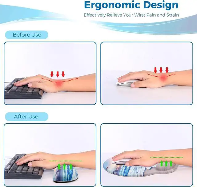 Ergonomic Design: Mouse pad and keyboard with wrist support relieve the pain and stiffness to your hands wrist eblow sholder ease the tension while typing or playing games.
