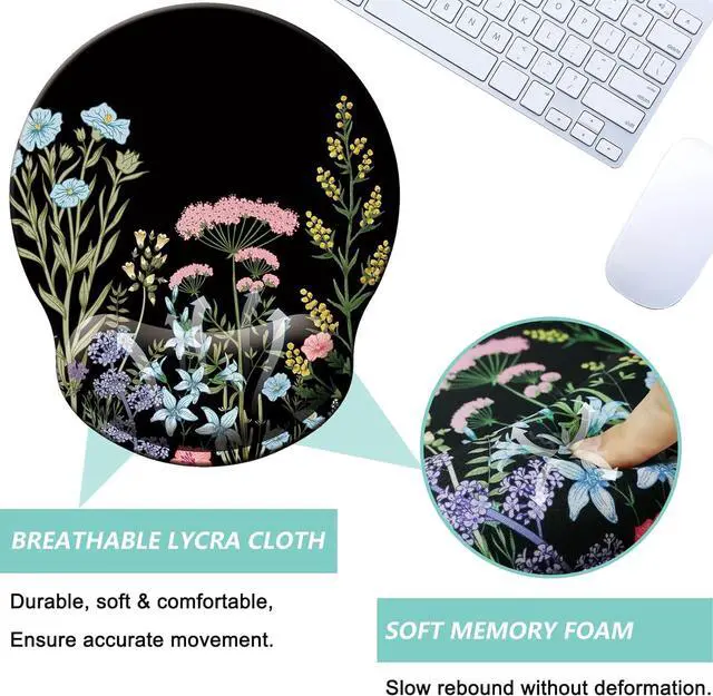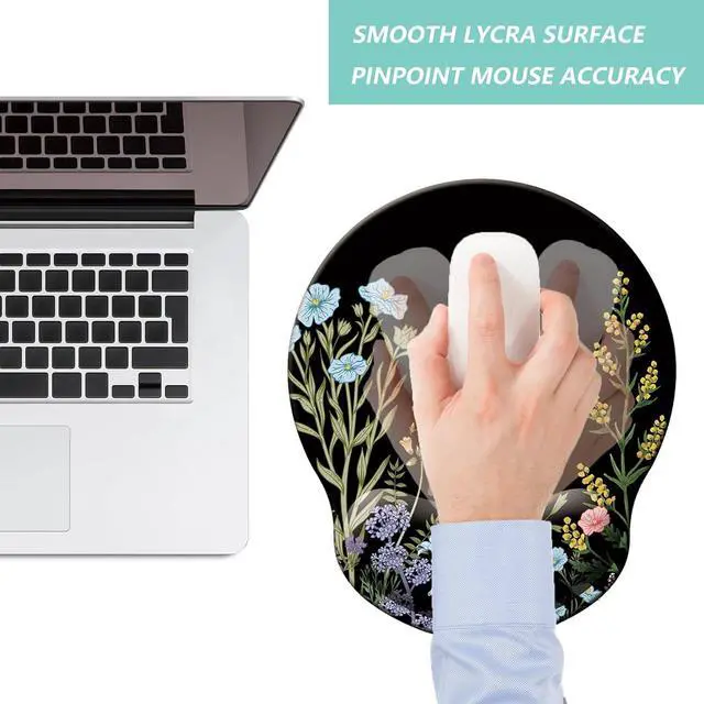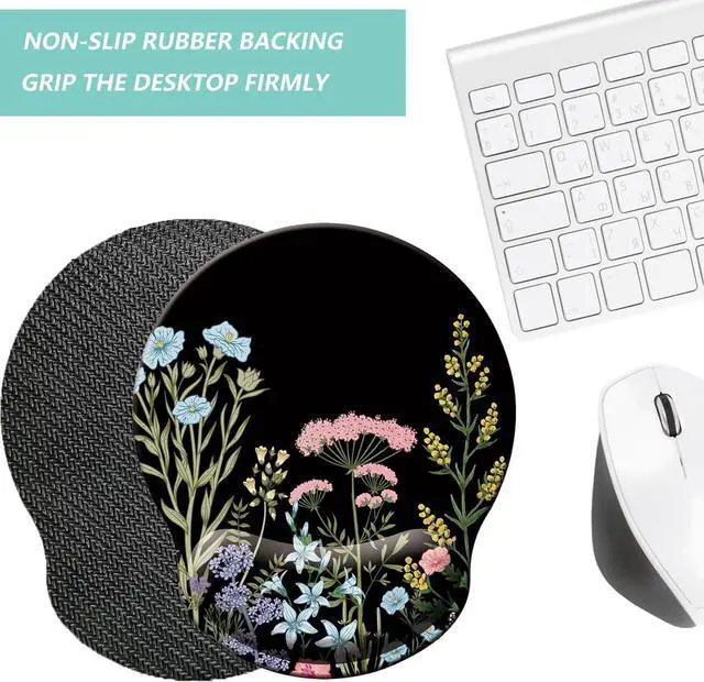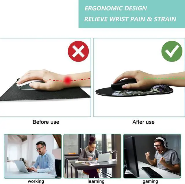 The reinforced edges are not easy to deform and damage no curl up on edges. Ergonomic soft wrist rest mouse pad provide good touch and comfortable support for your wrists. Keep arms wrists and hands from getting sore when using computer for long time. PROTECTION - Protect your wrist shoulder by using our mousepad with wrist support. It can reduce fatigue relieve pressure on your hand wrist elbow and shoulder avoid carpel tunnel syndrome and avoid excessive friction between wrist and desk. BEAUTIFUL - Carefully selected several pretty and delicate pattern vivid color and elegant look decor your desk personalized both at home or in office.
