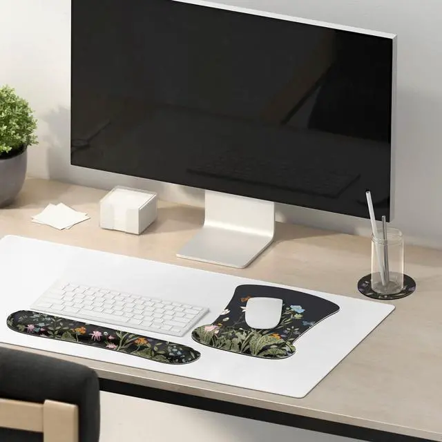 Dense non-slip textures provide strong stability and they can be firmly attached to the tabletop providing a heavy grip. You can enjoy stable mouse operation at work or in games.? [3-in1 Wrist Rest Set]Keyboard wrist rest mouse pad and coaster. All three of these items can add color and cheer to your workspace and home. It is compatible with most types of computers such as desktop computers laptops Macs etc. And it's perfect for men and women co-workers employees friends and family.