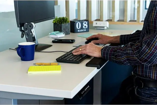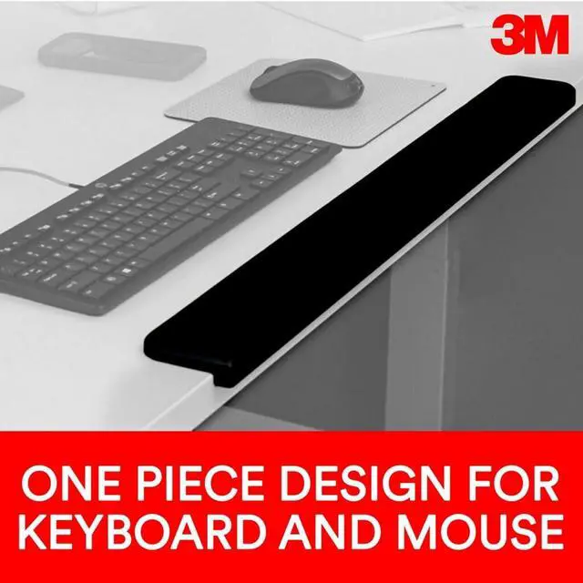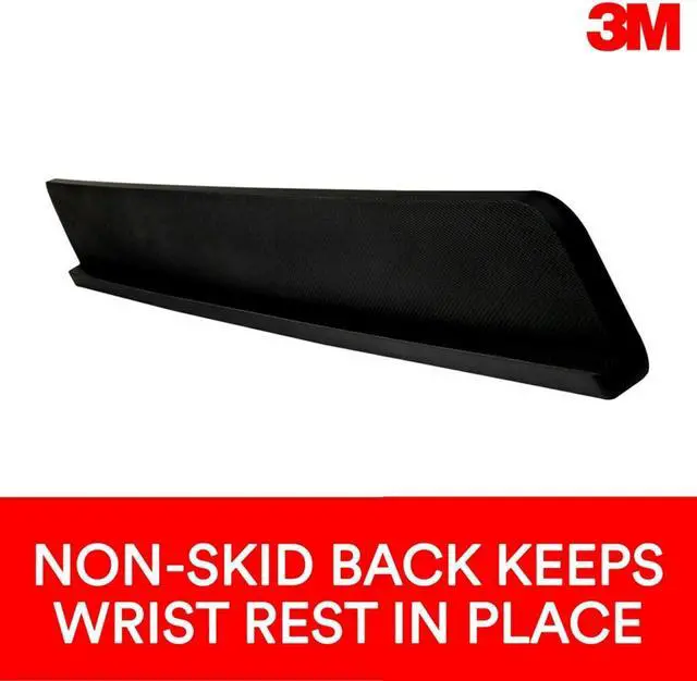 Designed for use with height adjustable desks it is wider and deeper than traditional wrist rests for comfort while sitting or standing. The wrap around base with non-slip back is easy to position on your desk making it feel like an integral part of your work spaceOne piece design makes for an easy transition between the keyboard and mouse and is comfortable to lean on while standing. 3M gel technology creates a wrist rest that is firm enough to provide the support you need but soft enough for optimal comfort. Contains 25% post-industrial recycled content. 30 in L x 3 in W x 1.03 in H.