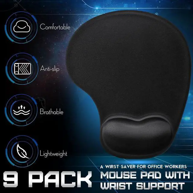 Sufficient Quantity: this ergonomic mouse pad set contains 9 black mouse pads with wrist rests suitable for long term typing or gaming helping you say goodbye to wrist fatigue a good choice for long term mouse users such as gamers students programmers etcErgonomic