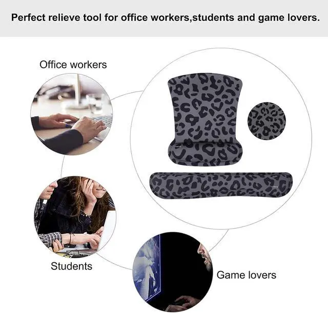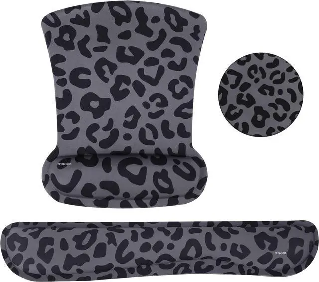 Dimension of keyboard wrist rest: 17.52 x 3.15 inch; dimension of mousepad: 9.84 x 7.87 inch; dimension of coaster: 3.9 inch (diameter). Fits all mouse and keyboard. This mousepad set will be compatible with MacBook / Notebook / Chromebook / Ultrabook / Desktop / PC also compatible with iMac. Ergonomically designed with breathable neoprene cloth and raised memory foam. Efficient for easy typing & pain relief. Offers soft support to relieve pressure and pain of your wrist keep your wrist in a natural and comfortable state. Non-slip base can firmly grasp the desk to prevent sliding or any unintentional movement. One cup coaster is included to meet more your needs. All these pads will give you enough space to operate your mouse and keyboard also can decorate your desktop. Edges is reinforced to endure long-time use. The filled cushion part will slowly rebound when leave it not easy to deform. Well designed to prevent the wrist fatigue and pain when you work long hours. Suitable for OL gamer and programmer used in home / office.