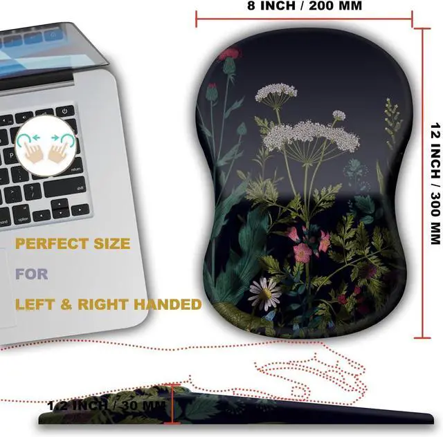 Ergonomically & Massage Design The ergonomic structure with massage design of the arched part provides the maximum comfort to your wrist. We designed the tilt angle and massage bulge on the surface a three-dimensional geometric irregular shape and massage part can totally support your wrist and promoting healthy blood flow on the arched part. Your wrist will be no longer stressed. High Quality Materials It is made of 100% memory foam. The covering is the smooth fabric high-quality Lycra cloth and high-definition bright print pattern on the surface which won't irritate to skin. The back is made of Anti-slip PU.