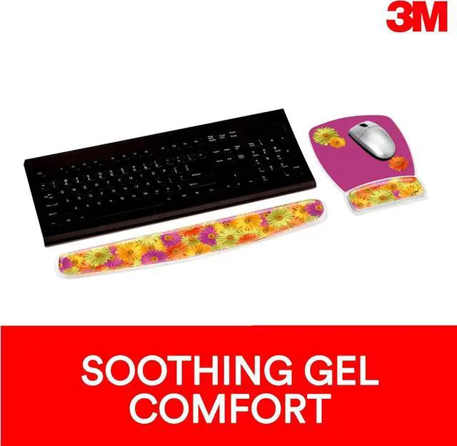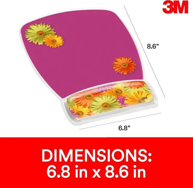 Precise surface enhances the precision of optical mice at fast speedsSoothing gel comfort encourages neutral wrist postureClear gel is easy to keep cleanFun daisy design brightens up the workspace1 year warranty 8.6 in. x 6.8 inGel Mouse Pad with Wrist Rest MW208DS Clear Gel Daisy Design 6.8 inches x 8.6 inches x 0.75 inchesSoothing gel comfort encourages neutral wrist posture. Non-skid base. Clear gel is easy to keep clean. Fun design brightens up the workspace. It has 1-year warranty.