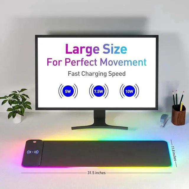 Easy to use: This extended mouse pad has a button to control the lighting. Press once to change the color you like, press twice quickly to change the brightness, press and hold for about 3 seconds to turn on/off. The mouse pad is powered by USB, plug and play, no driver required.