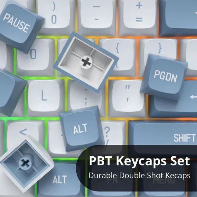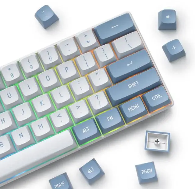 The classic white and blue minimalist colour scheme, perfect for those who prefer a minimalist style in their work or gaming, with extra light green personalized keys, you can DIY different styles of keyboards according to your own ideas.