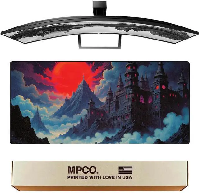 MPCO. Dark Fantasy Large Gaming Desk Pad - 36" x 17" Duraglyde Fabric The Red Luna Desk Mats - Non-slip, Washable, Smooth Glide for Precision Gaming & Work