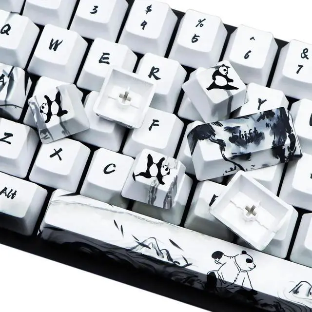 UNIQUEThe 68 set keyboard key caps printed with Ink landscape painting and Panda patterns theme are very unique and beautiful for your keyboard