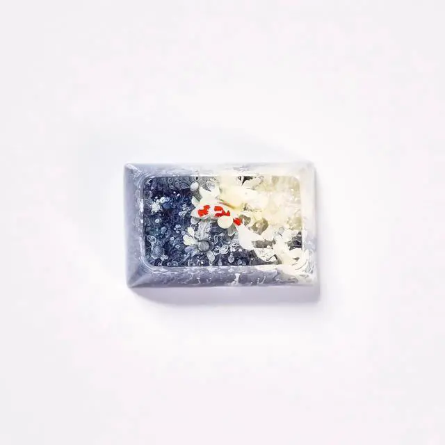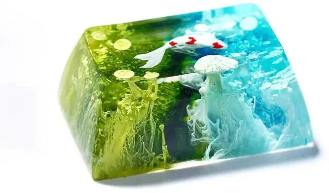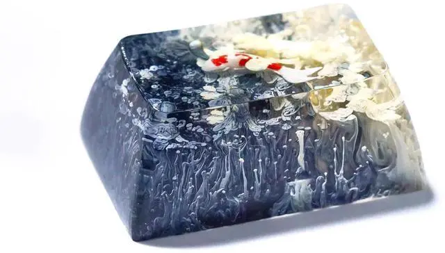 Random Koi Fish Tab Artisan Keycap Ocean Coral Reef SA Profile Custom Keycaps 1.5U Tab Handmade Gaming Resin Key Cap Cherry MX Switch Compatible Mechanical Keyboard Koi Lover Gift