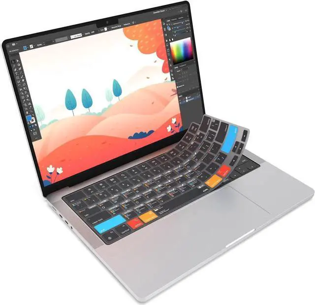 JCPal Adobe Illustrator Shortcut Guide Keyboard Cover for Apple MacBook Pro 14 inch and MacBook Pro 16 inch (M1-M4 Models) and MacBook Air 13 inch and MacBook Air 15 inch (M2-M4 Models) (US-Layout)