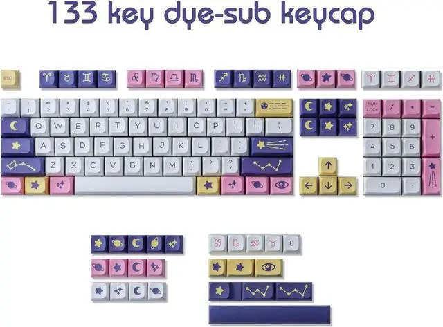 JOMKIZ Keycaps, 132 Keys PBT Keycaps Set Constellation XDA Profile Dye Sublimation Customized US Layout Keycaps for with Cherry MX Switches Mechanical Keyboards