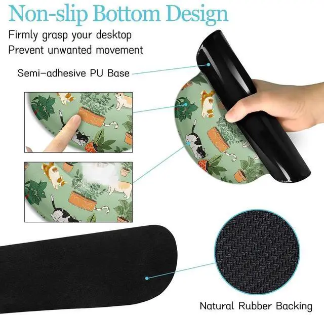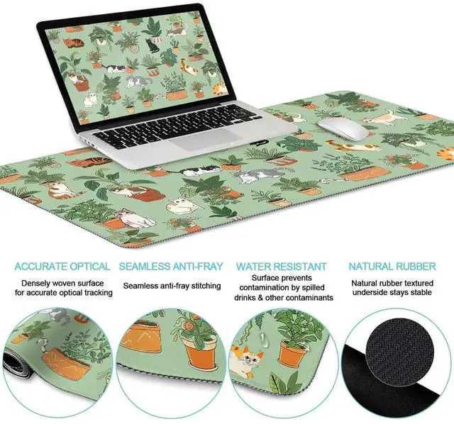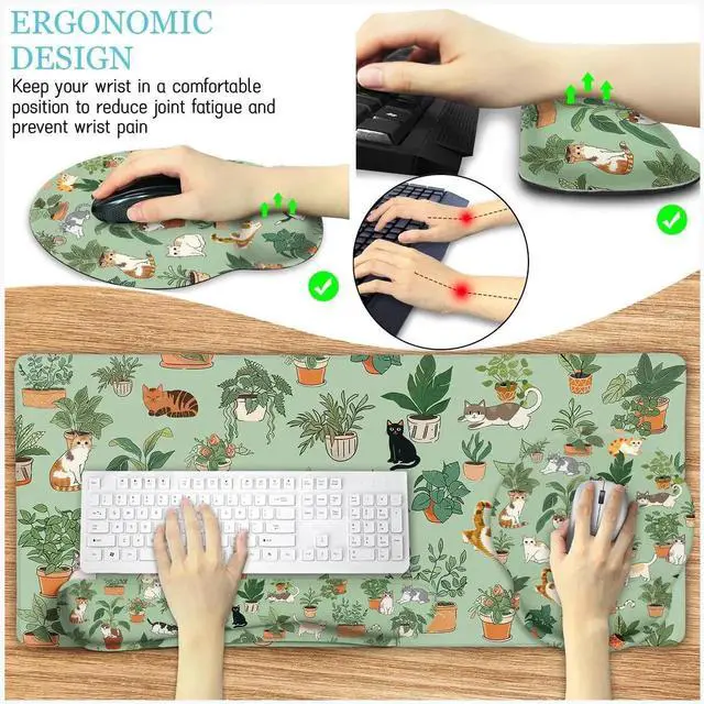 LIMKRIAN Cat Mouse Pad XXL Desk Mat Set, Green Ergonomic Mouse Pad with Wrist Rest, Large Gaming Mousepad Wrist Support Keyboard Mat Cup Coaster Set Cute Office Desk Decor Accessories