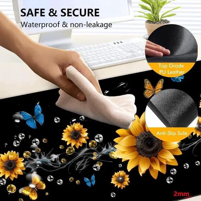 The surface is waterproof and moisture-proof design to protect the desk from moisture and stains. Water accidentally splashed on the warm table mat, just wipe it lightly with a rag, there will be no water leakage, which ensures the safety of the gaming mouse pad.