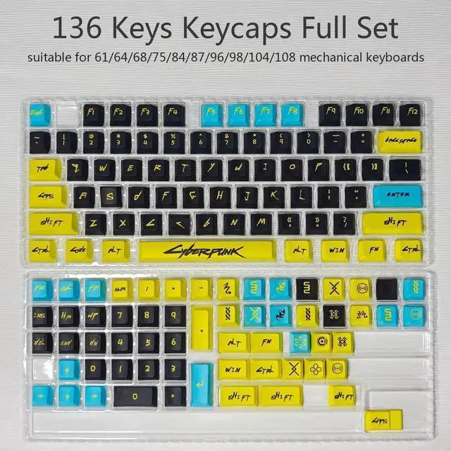 PBT Keycaps Set 136 Keys Dye Sublimation Cherry Profile Custom Keycaps 60 65 75 80 100 Percent for 61/64/68/84/87/100/104/108 Retro Gaming Cherry Gateron MX Swithes Mechanical Keyboard