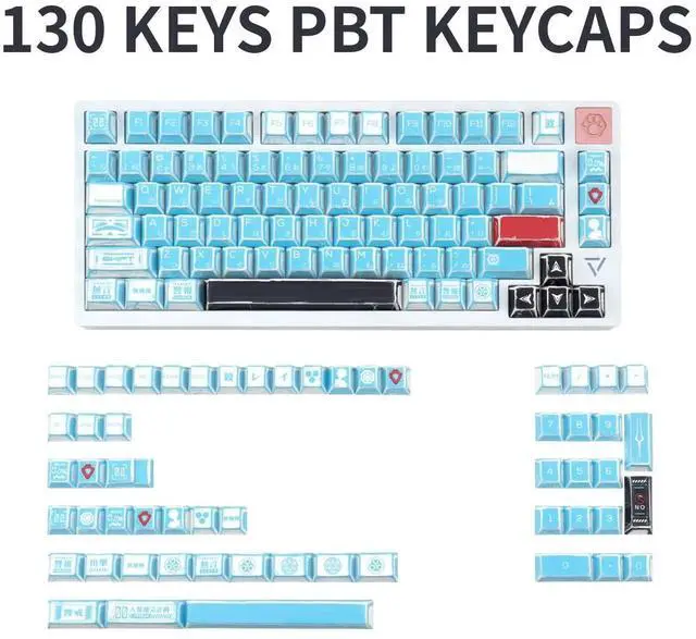 TIMSEKER 130 Keys Blue Manga Japanese Keycap Set, Retro Cherry Profile PBT Keycaps, Custom Anime Key Cap for Mechanical Gaming Keyboard (Not Include Keyboard)