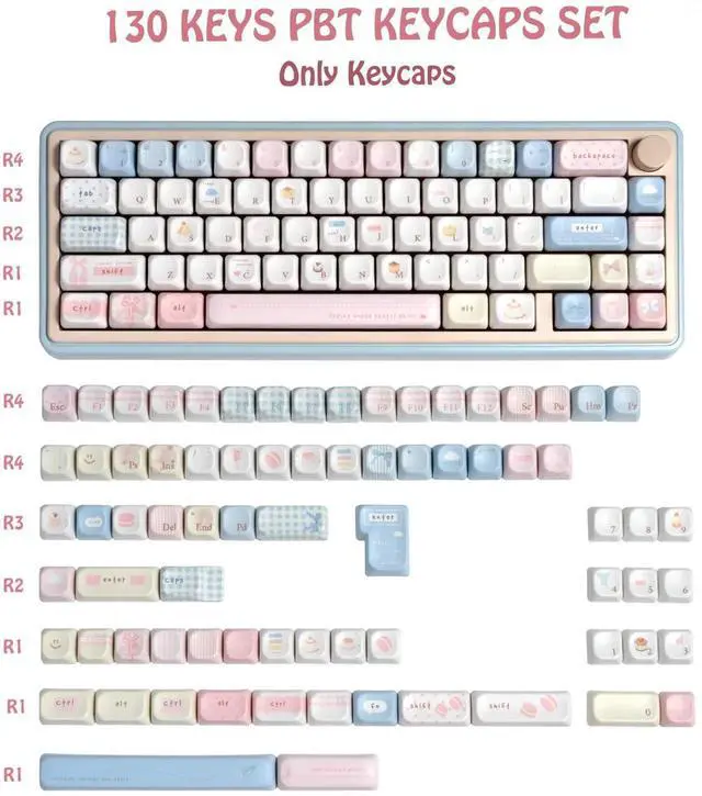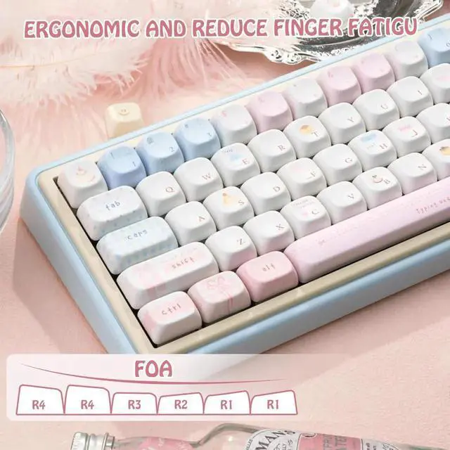 TIMSEKER FOA Profile Cute Keycaps Set, PBT Material, Sweet Custom Key Caps for Mechanical Keyboard, Five Side Dye Sublimation, 145 Keys