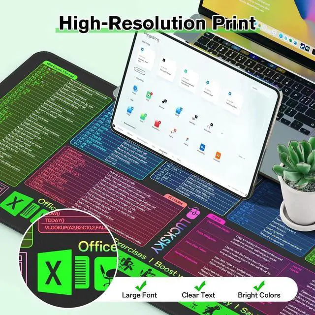 Over 150 Shortcuts & Well Categorized: Still spending a lot of time searching for specific shortcuts? Lucksky's Excel shortcut mouse pad categorizes over 150 commonly used shortcuts.