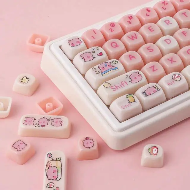 Whether you're a gamer, typist, or simply want to add a touch of kawaii to your keyboard, these keycaps are perfect for you. Compatible with most keyboard models, including RK61, Keychron, and 60% keyboards, these keycaps provide an easy way to customize your keyboard to match your style. The dye-sublimated legends ensure that the keycap legends won't fade over time, maintaining their vibrant and crisp appearance. Upgrade your keyboard with these Pink MOA Profile PBT Keycaps and enjoy a unique and personalized typing experience. Perfect for Valorant enthusiasts, anime lovers, or anyone who appreciates cute and stylish keycaps.