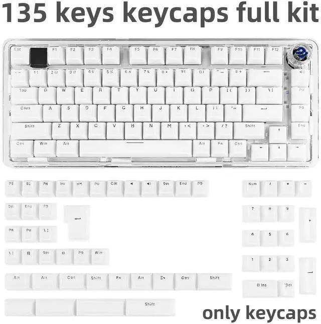 GEKUCAP White Clear keycaps 135 Keys, Crystal Jelly Keycaps MDA Profile, Cute Shine Through Custom Keycap Set for 61/68/84/87/98/100 Cherry Gateron MX Mechanical Keyboard