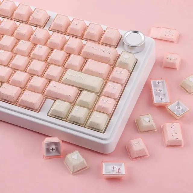 Sunzit Pink Keycaps, 166 Keys PBT Custom Translucent Keycaps, Cherry Profile Crystal Jelly Keycap Set, Cute Shine Through Keyboard Key caps for Mechanical Keyboards