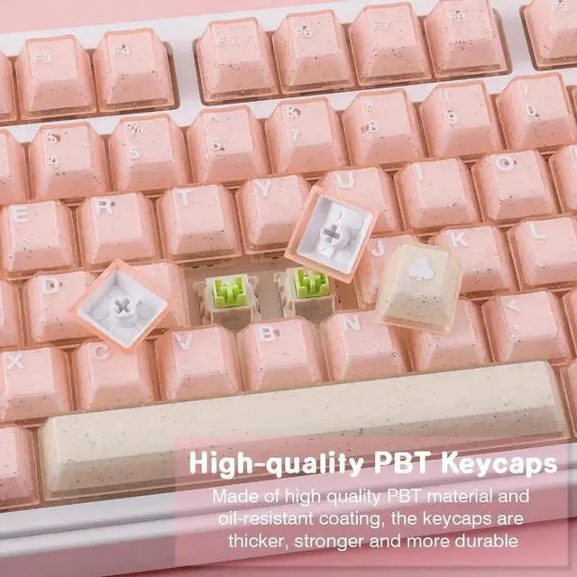 • Durable PBTThe keycap is made of molded double-layer pbt material pressed and will not fall off easily, due to the special production process of the keycap, so the surface of the keycap will appear in the injection molding holes, does not belong to the quality problem