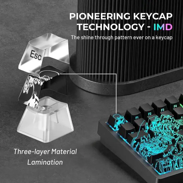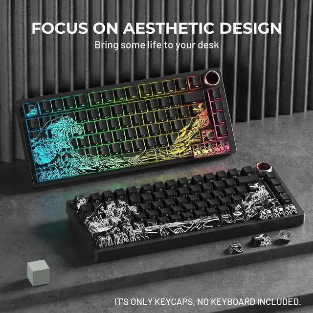 Pattern Shine Through KeycapsThe custom keycap features advanced IMD technology for the first time, allowing keyboard light to pass through classic kanagawa pattern, making your keyboard truly unique with the brilliant glow of these shine through keycaps. In addition, IMD technology can ensure that the space keycap is straight, which is a technological innovation.