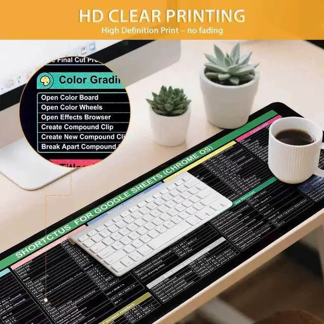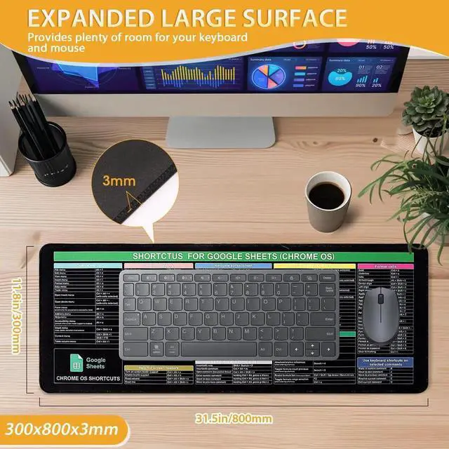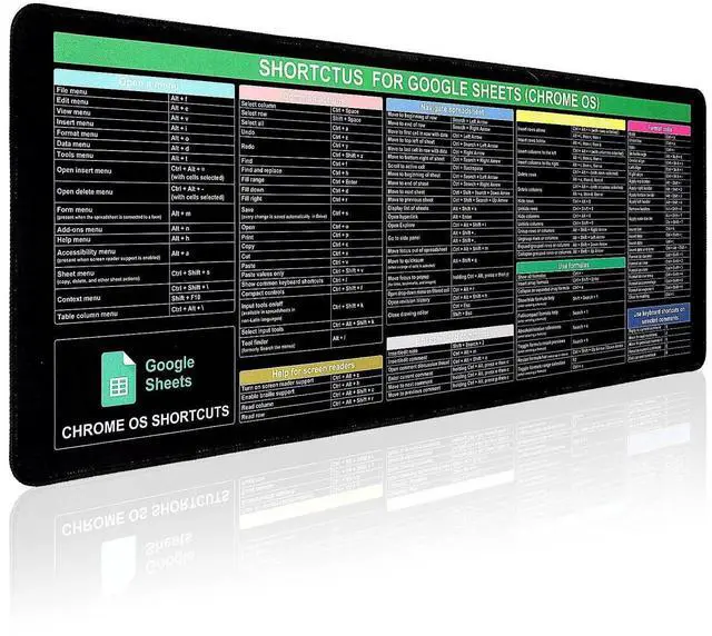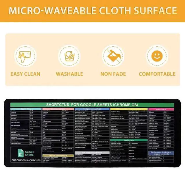 Mouse Pad with Shortcuts for Google Sheets Cheat Sheet Mousepad - Chrome OS, Large Size XL Gaming Pad for Mouse and Keyboard, High Definition Printing, Stitching, Washable, Anti Slip
