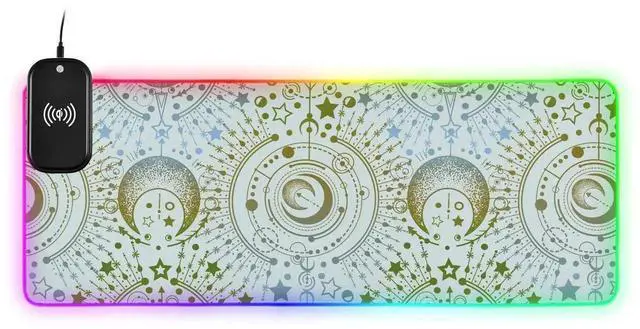 Gaming Mouse Pad Wireless Charging with 16 Led Light Modes with Premium Smooth Surface(Starry Sky Print, 31.5 x 11.8 in, White)