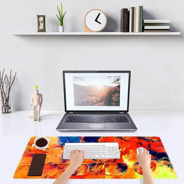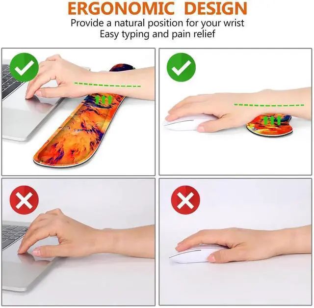 Chose DINKY Large Gaming Mousepad keyboard wrist rest pad & mouse wrist rest with Cup coaster set 4 in 1, which will provide you with the comfort you want. The bottom works well keeping itself on the surface being used so it won't slide around while in use.