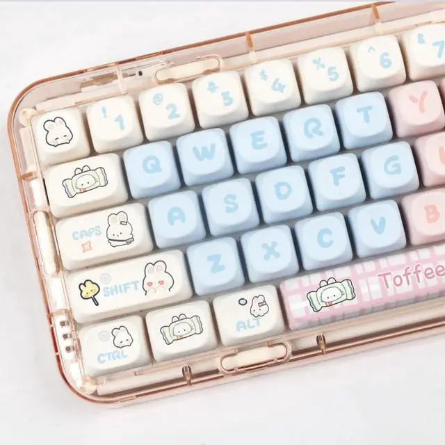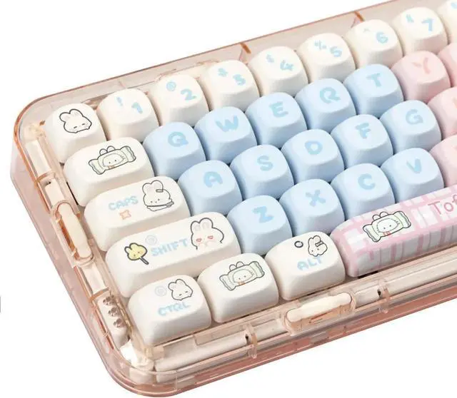 Cute Pink Milk Rabbit Keycaps: With their pink and blue cute rabbit pattern design, the MOA profile cute keycaps are sure to impress; They are perfect for gamers, typists, and anyone who wants to add a touch of fun and style to their workspace