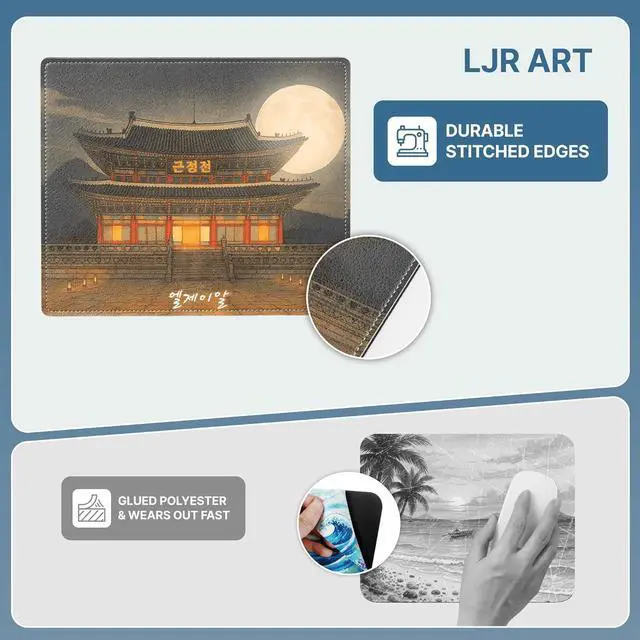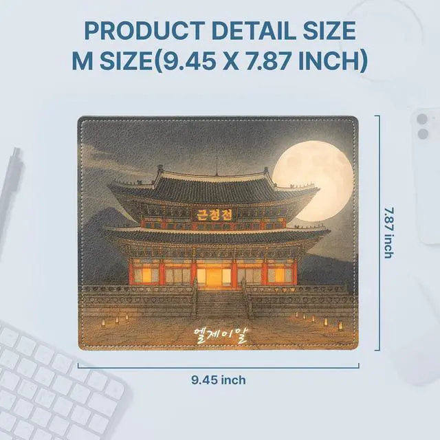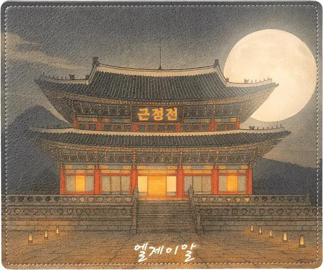 Unique Korean Palace Design: Featuring an artistic illustration of one of Koreas most iconic palaces under the moonlight this travel mouse pad combines elegance and functionality. Its a beautiful cultural piece that elevates your workspace and makes a thoughtful gift for art and travel lovers alike.