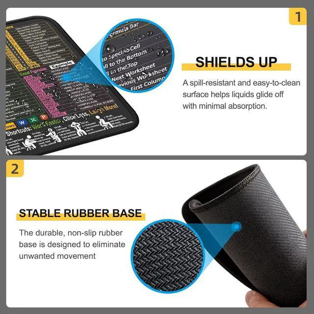 Durable & Non-Slip Design: This Multi-Software Shortcut Mouse Pad features stitched edges to reduce fraying. The non-slip rubber base helps keep it securely in place and the water-resistant fabric allows for easier maintenance.