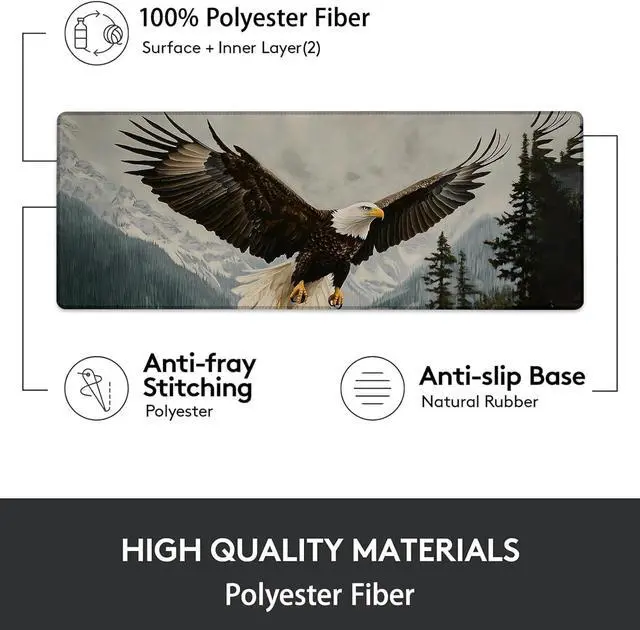 Gaming Mouse Pad Bald Eagle Large Mouse Pad Desk Mat Non-Slip Rubber Base MousePads for Computers Laptop Office School Home Accessories Decor 31.5 x 11.8