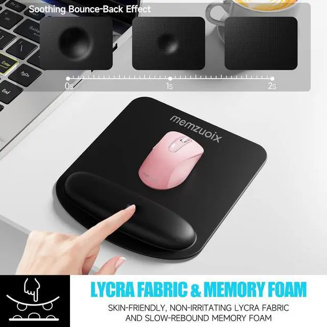 Take Care Of Your Wrist Gently: The memzuoix ergonomic mousepad wrist rest is filled with soft foam memory cotton that provides a comfortable touch and effective support to your wrist It is comfortable to the skin maintains the natural shape of the wrist and provides a good support experience for the wrist.