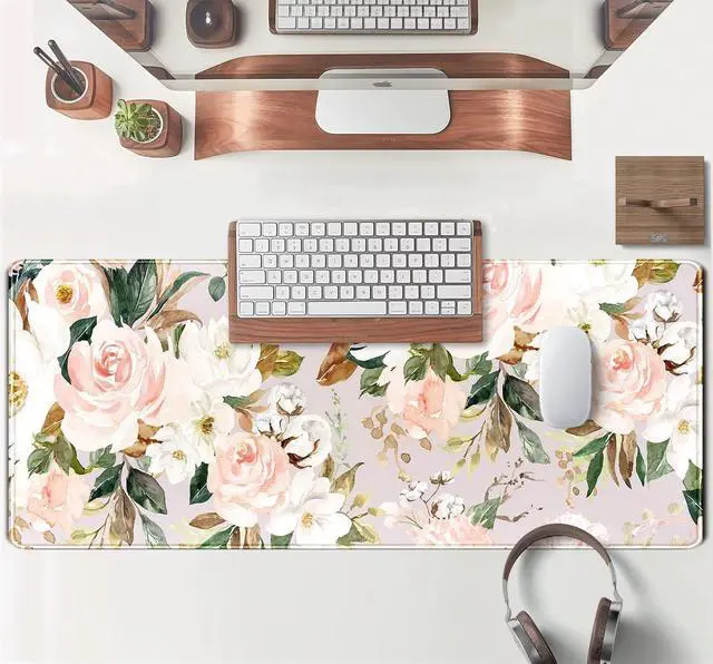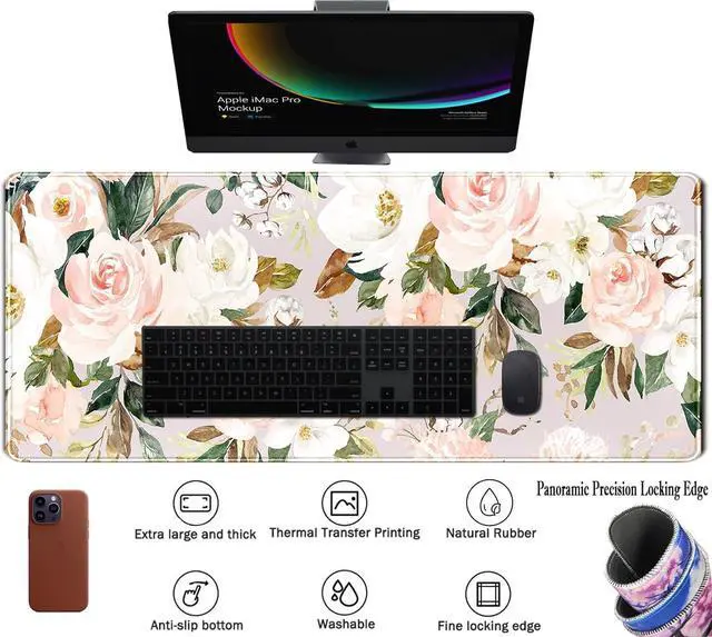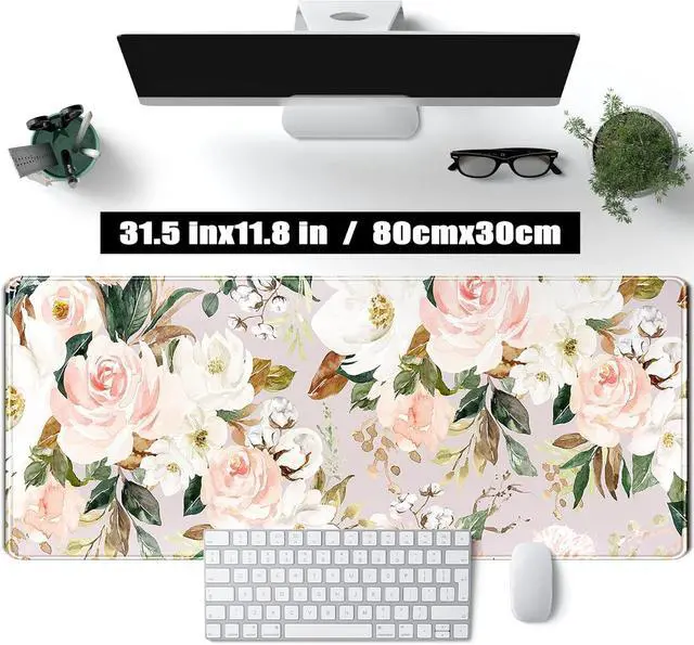 Ultra Large Extended Size The flowers desk mats size of 31.5 x 11.8 x 0.12 inch will fit your desktop perfect can put your mouse gaming keyboard and other desk items. Add color style and comfort into your workspace. Stable Non-Slip Rubber Base The dense Anti-Skid nature rubber base offers extra heavy grid to ensure the mouse mat stay securely in place. Anime mouse pad helps prevent unwanted pad sliding effectively when making fast mouse movements or typing. Large mouse pad for desk is available for any flat hard tabletop surface. Super Smooth Surface This desktop mouse pad with ultra-fine lycra allows for optimal speed and accurate control while gaming.