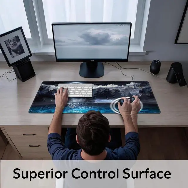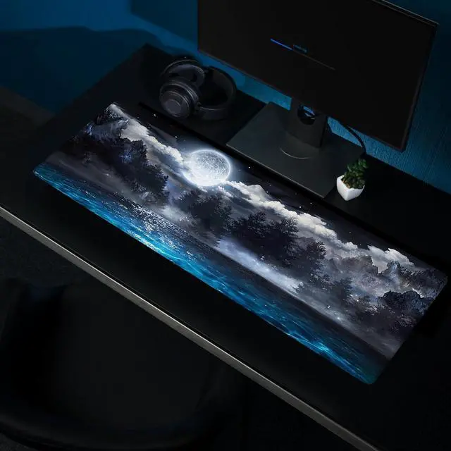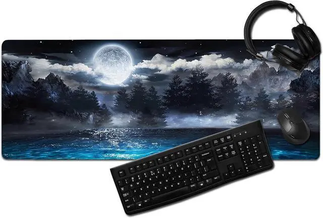 Large Size: Moonlight scene mouse pad measures 31.5 x 11.8 inches providing ample space for your mouse gaming keyboard and other desk items while protecting your desk from scratches and stains.