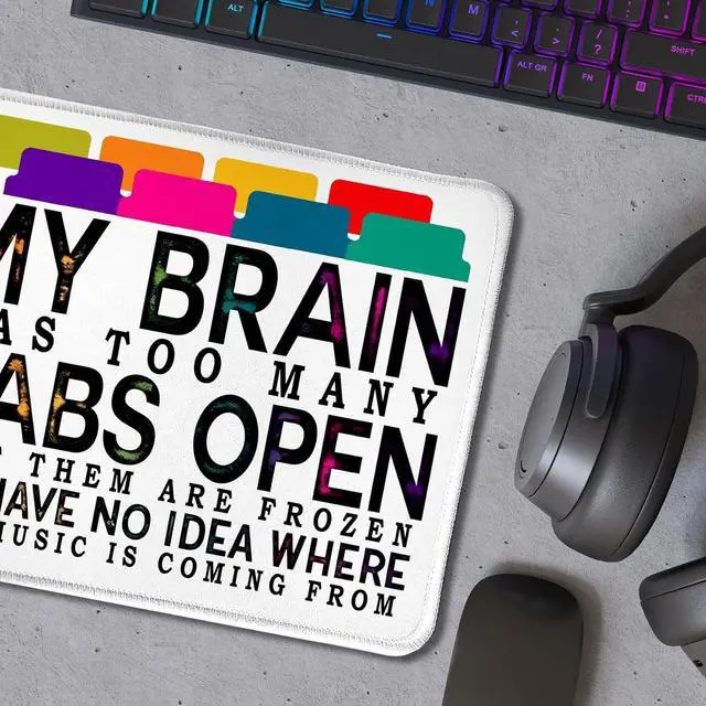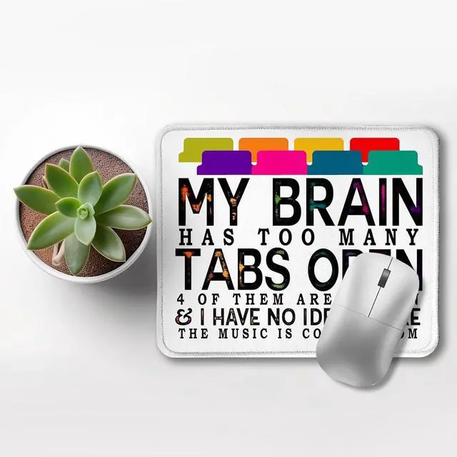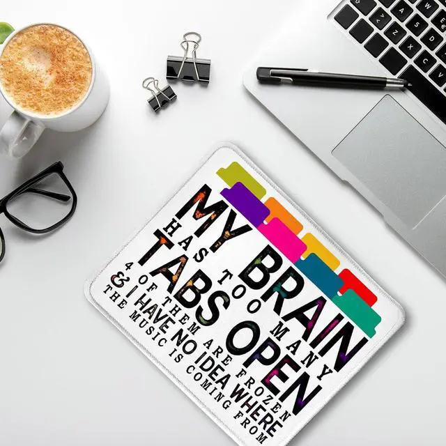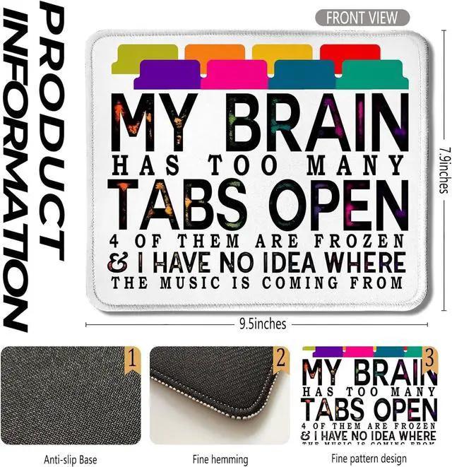 • Funny Mouse Pad for Work My Brain Has Too Many Tabs Open Funny Office Mouse Pad for Work Wireless Mouse Computers Laptop Desk Accessories Funny Gifts for Coworkers 9.5x7.9 Inch