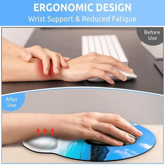 Gel Comfort Support: The mouse pad's wrist rest is filled with soft gel to offer superior comfort and effective support. Featuring an ergonomic design it effectively relieves wrist fatigue from prolonged mouse use and reduces wrist pressure and discomfort. This provides essential care for your wrist health and comfort helping you work or game more efficiently.