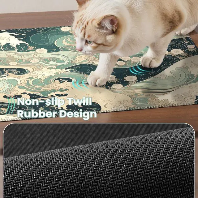 Clean: This desk mat cute is made of soft fabric and a fine spill-proof coating which can effectively prevent scratches stains and scuffs. Accidental spills like coffee or drinks can be easily wiped clean with a damp clothExquisite