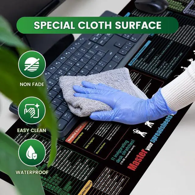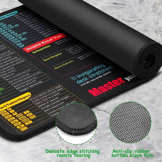 Maximum Comfort:? Measuring 31.5 x 11.8 x 0.12 (800 x 300 x 3mm) this XL Excel cheat sheet desk mat provides ample space for your mouse keyboard and more. Perfect for office work studying or gaming. Essential Excel Shortcuts at