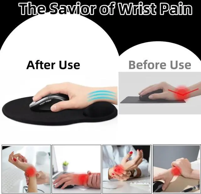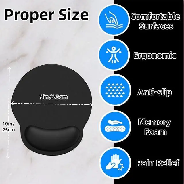 Ergonomic DesignThe mouse pad with wrist rest is designed with ergonomics and fits perfectly with your wrist when placing your wrist on the mouse pad providing soft support. This helps prevent long-term injuries such as carpal tunnel syndrome and other repetitive strain injuries ensuring you can use your computer with ease for long periods of time. Perfect Size The large mouse pad has an optimal shape and large size ( 9.6 '' x 8.6 ). You can move your mouse more easily and freely.